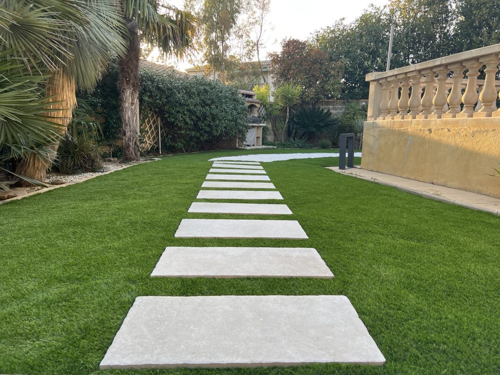 Le gazon synthétique est une alternative au gazon naturel fabriquée à partir de fibres synthétiques imitant l’apparence de l’herbe naturelle. Il offre un rendu esthétique durable sans les contraintes d’entretien d’une pelouse naturelle.